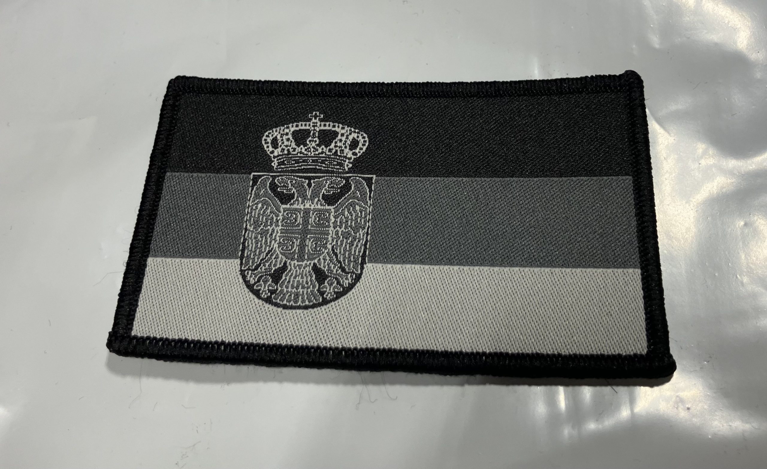 Amblem Crno-bela zastava Srbije sa grbom iz Army Shop kolekcije predstavlja praktičan i prepoznatljiv aksesoar za sve ljubitelje vojne opreme i patriotizma. Ovaj amblem dimenzija 9 x 6 cm lako se postavlja zahvaljujući čičak traci, što omogućava jednostavno pričvršćivanje na različite komade odeće ili opreme.