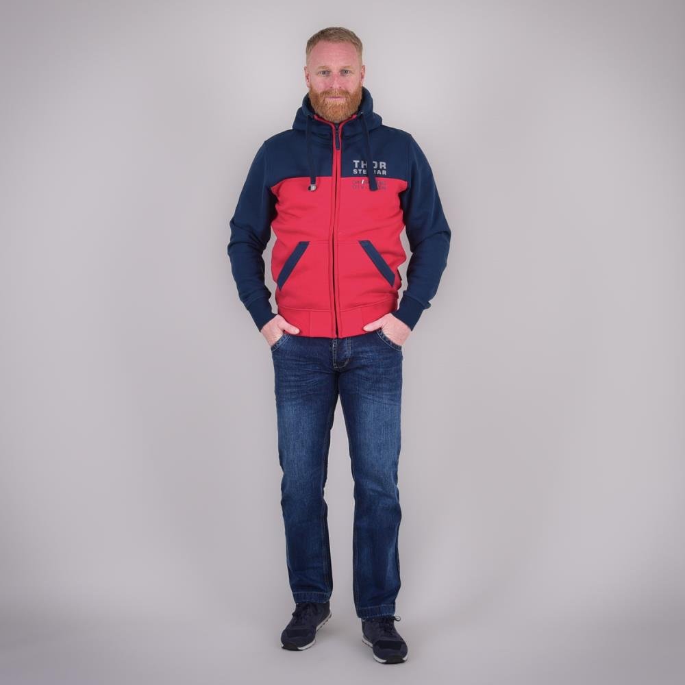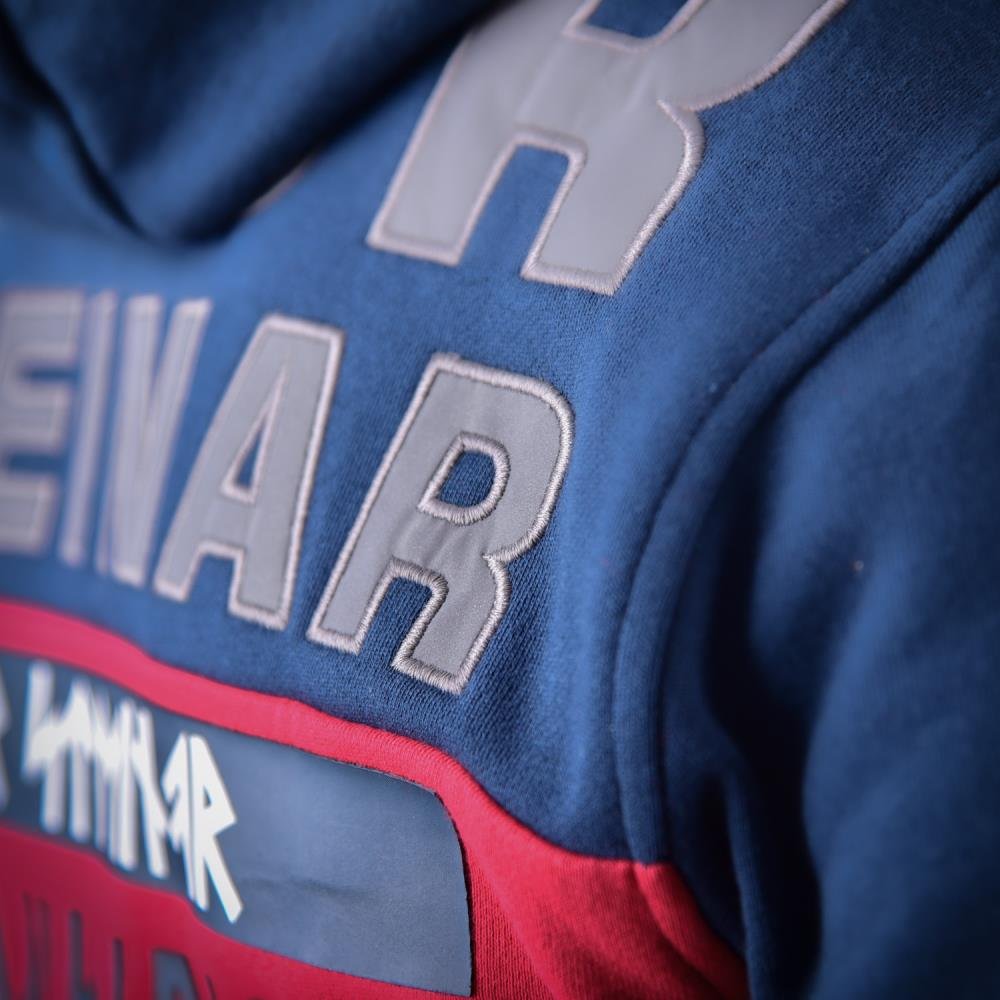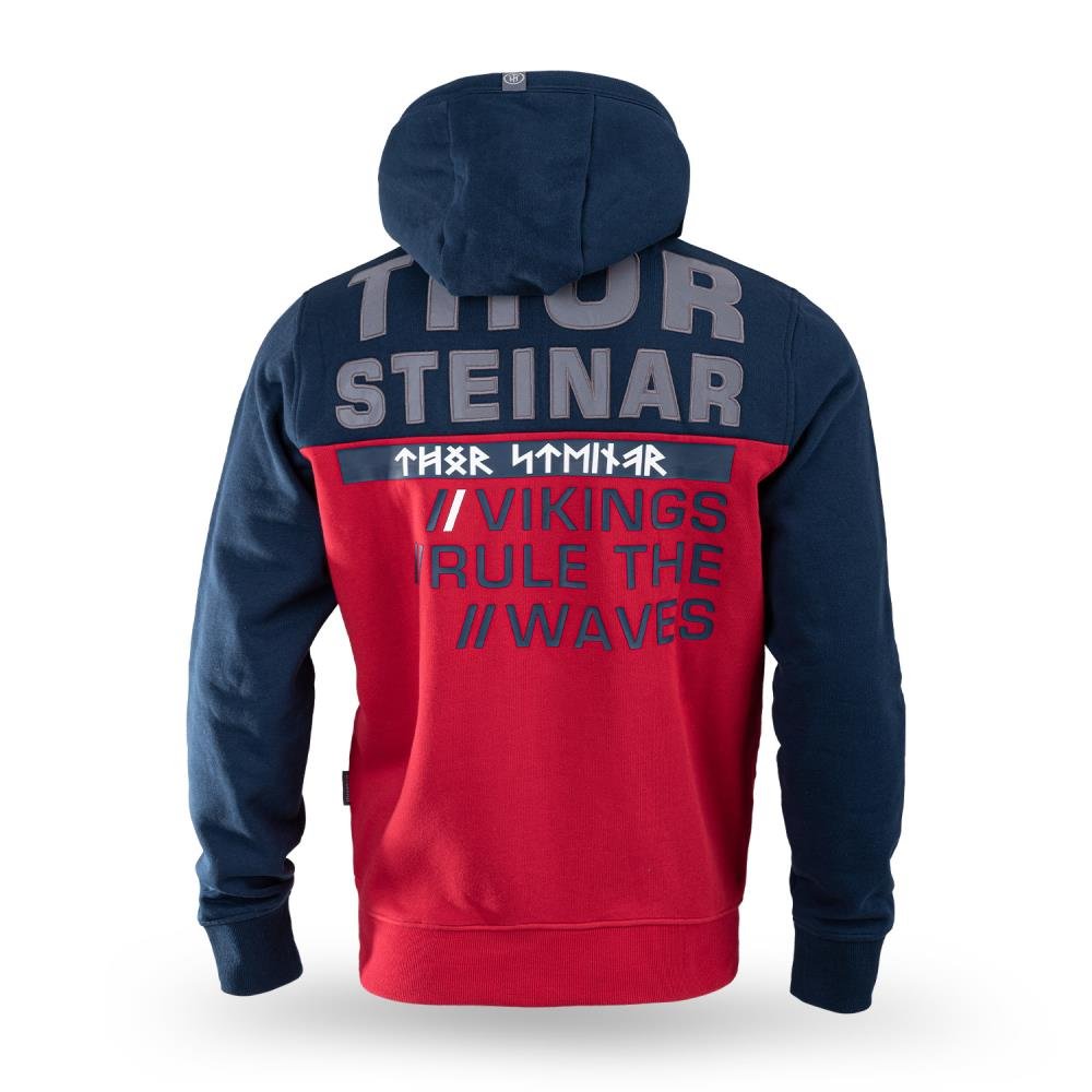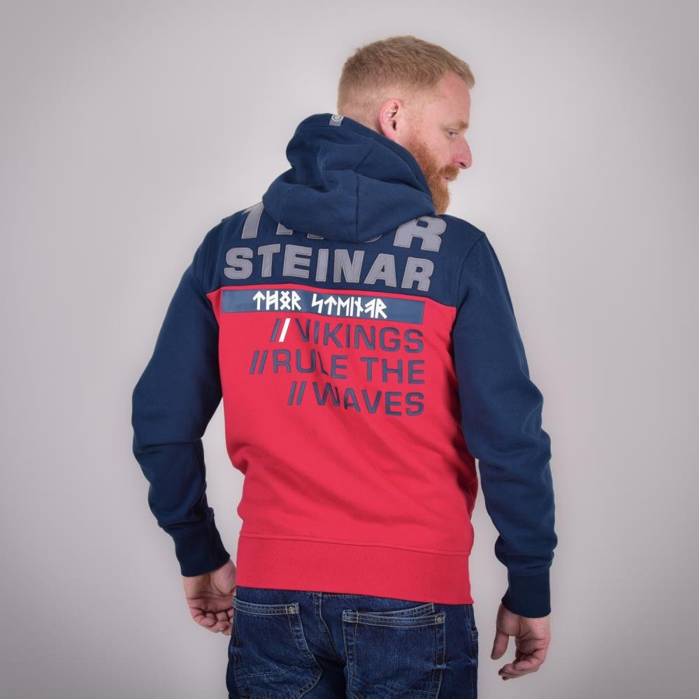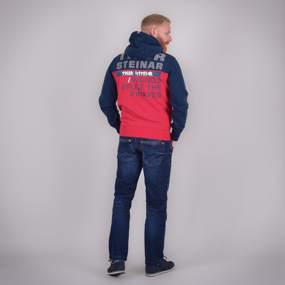 Thor Steinar Viking Rules duks sa kapuljačom je pamučno-poliesterska dukserica (70% pamuk, 30% poliester) standardnog kroja, u teget-crvenoj kombinaciji. Namenjen za svakodnevno nošenje u hladnijim danima, kroz jesen i zimu, i opuštene aktivnosti.